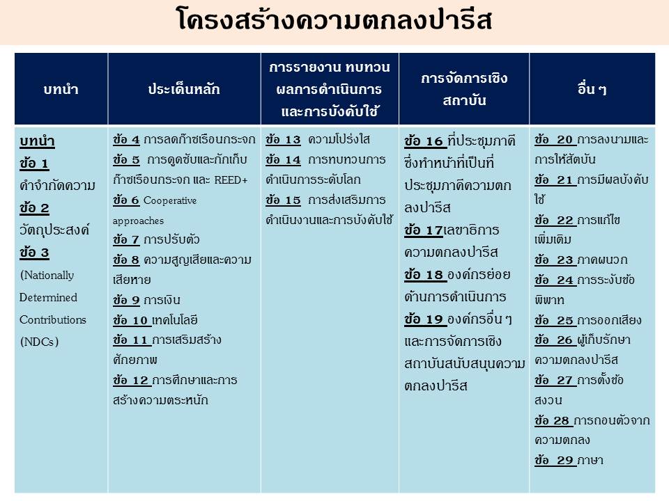 เนื้อหาสาระสำคัญของความตกลงปารีส