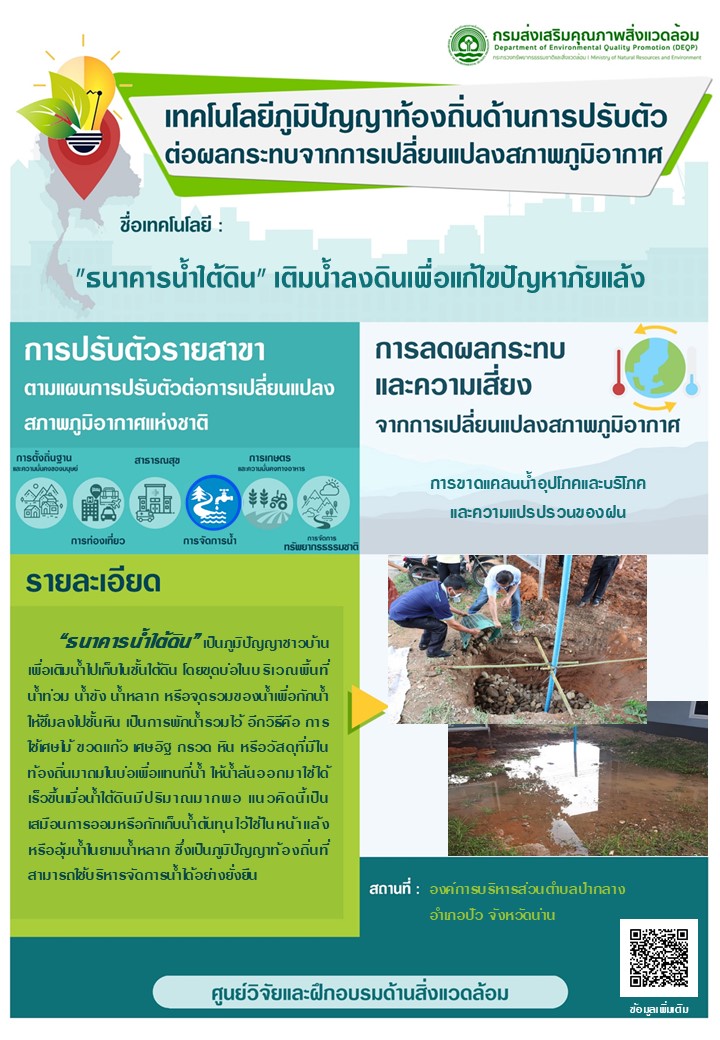 "ธนาคารน้ำใต้ดิน" เติมน้ำลงดินเพื่อแก้ไขปัญหาภัยแล้ง